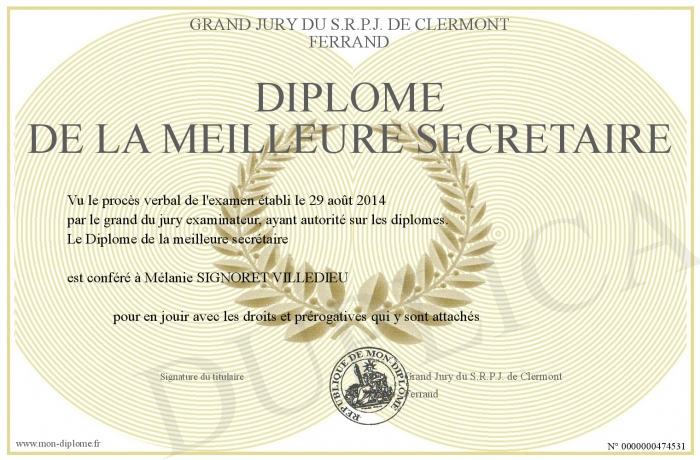Envoyez par email votre Diplôme de la meilleure secrétaire personalisé