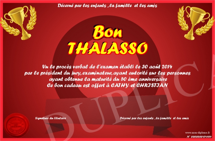 Envoyez par email votre Bon THALASSO personalisé