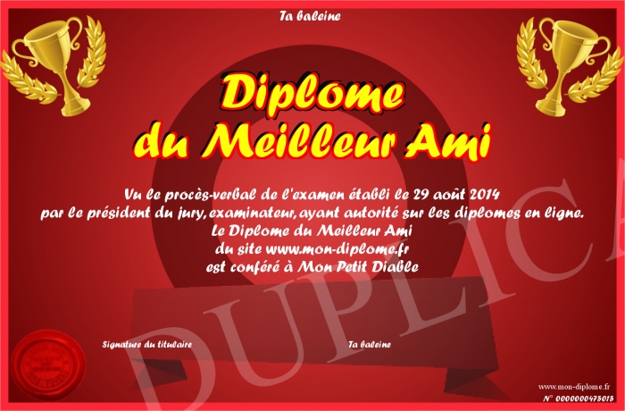 Envoyez par email votre Diplôme du Meilleur Ami personalisé