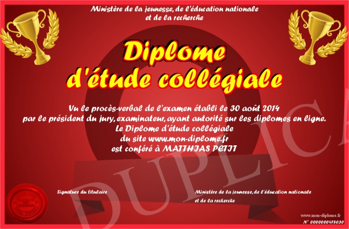 Envoyez par email votre Diplôme d'étude collégiale personalisé