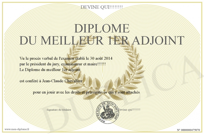 Envoyez par email votre Diplôme du meilleur 1er adjoint personalisé