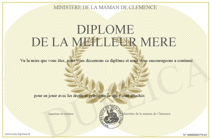 Envoyez par email votre Diplôme de la meilleur mère personalisé
