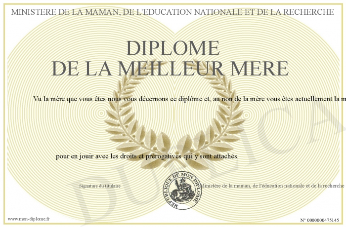 Envoyez par email votre Diplôme de la meilleur mère personalisé