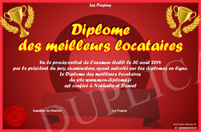 Envoyez par email votre Diplôme des meilleurs locataires personalisé