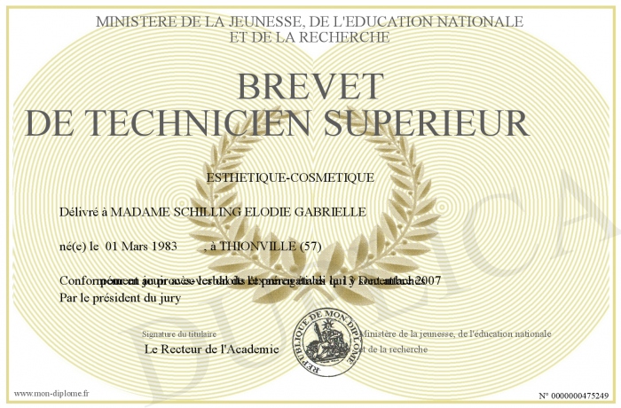 Envoyez par email votre Brevet de technicien supérieur personalisé