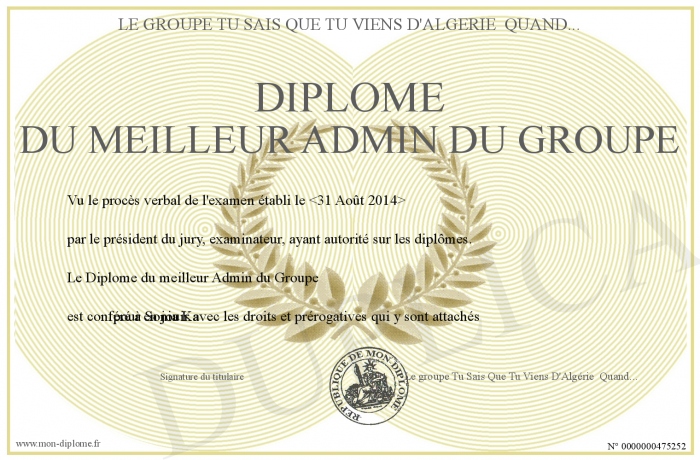 Envoyez par email votre Diplôme du meilleur Admin du Groupe personalisé