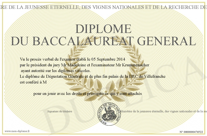 Envoyez par email votre Diplôme du baccalaureat général personalisé