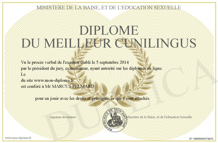 Envoyez par email votre Diplôme du meilleur Cunilingus personalisé