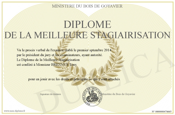 Envoyez par email votre Diplôme de la Meilleure Stagiairisation personalisé