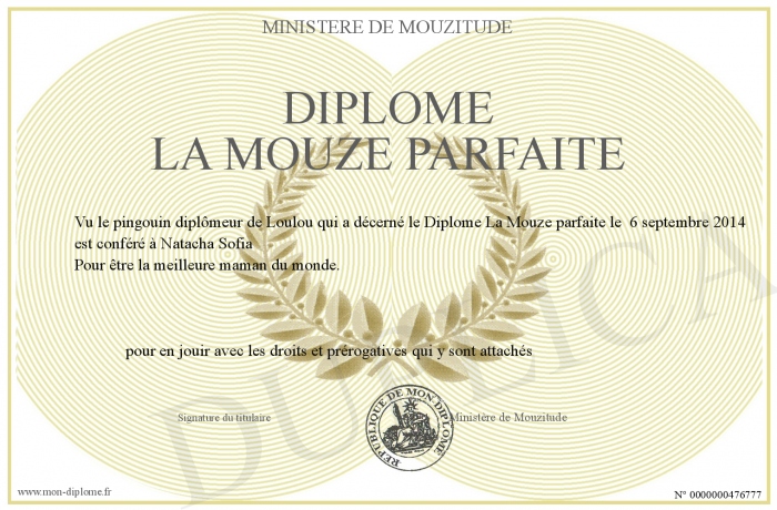 Envoyez par email votre Diplôme La Mouze parfaite personalisé