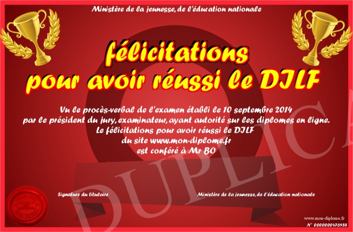 Envoyez par email votre félicitations pour avoir réussi le DILF personalisé