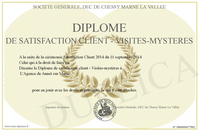 Envoyez par email votre Diplôme de satisfaction client - Visites-mystères personalisé