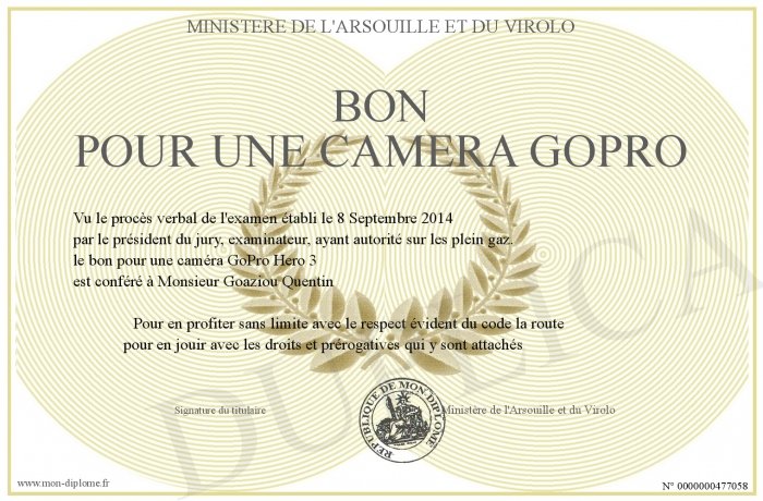 Envoyez par email votre Bon pour une caméra GoPro personalisé