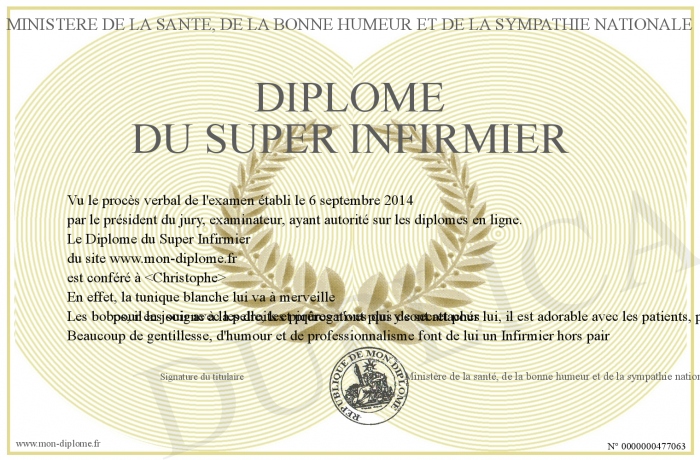 Envoyez par email votre Diplôme du Super Infirmier personalisé