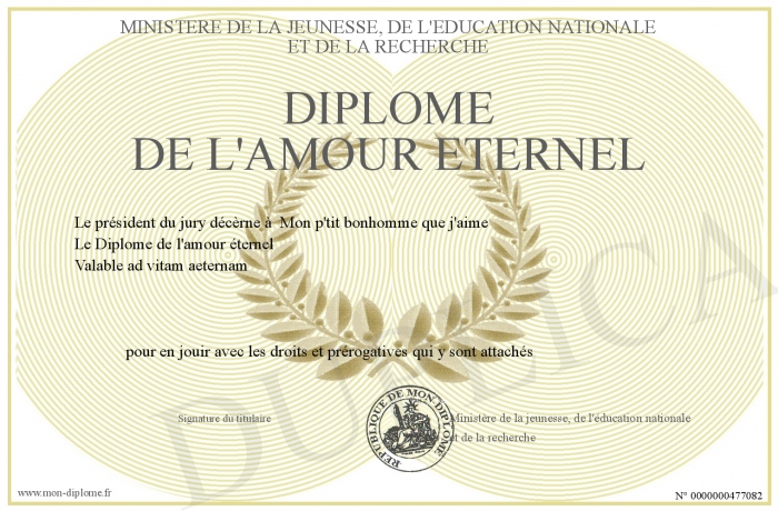 Envoyez par email votre Diplôme de l'amour éternel personalisé