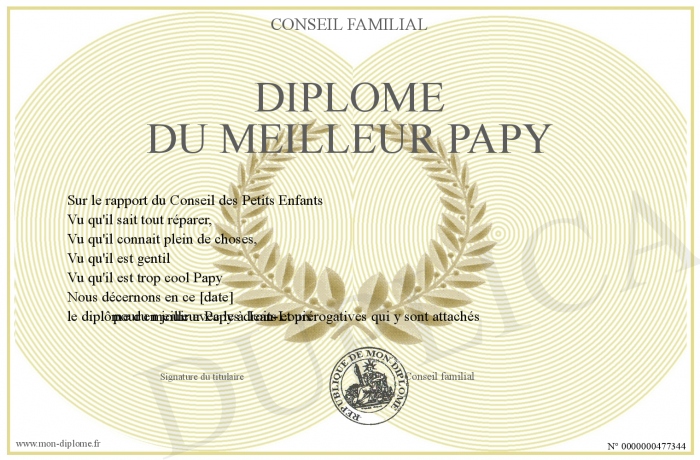 Envoyez par email votre Diplôme du Meilleur papy personalisé