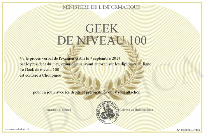 Envoyez par email votre Geek de niveau 100 personalisé