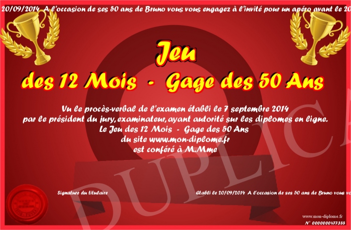 Envoyez par email votre Jeu des 12 Mois - Gage des 50 Ans personalisé
