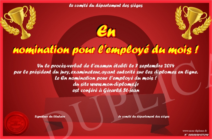 Envoyez par email votre En nomination pour l'employé du mois ! personalisé