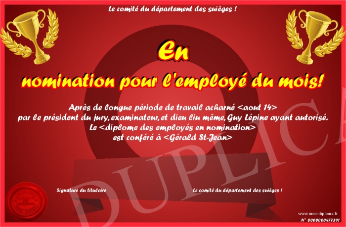 Envoyez par email votre En nomination pour l'employé du mois! personalisé