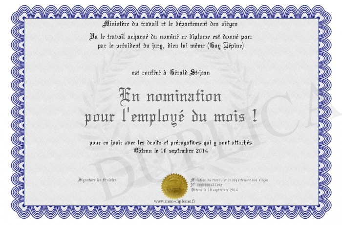 Envoyez par email votre En nomination pour l'employé du mois ! personalisé