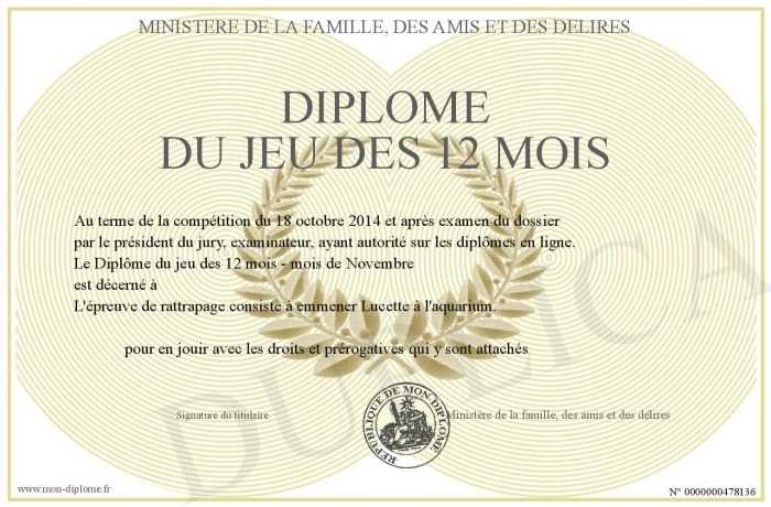 Envoyez par email votre Diplôme du jeu des 12 mois personalisé