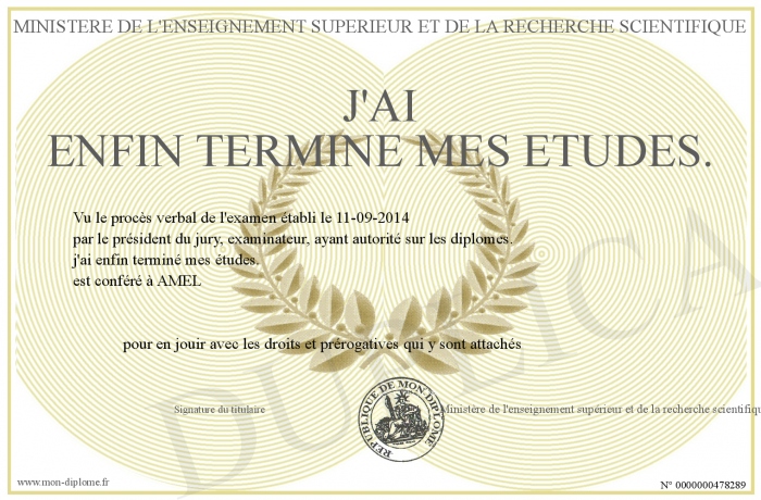 Envoyez par email votre j'ai enfin terminé mes études. personalisé