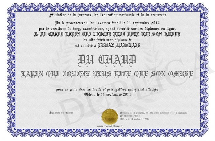 Envoyez par email votre DU CHAUD LAPIN QUI COUCHE PLUS VITE QUE SON OMBRE personalisé