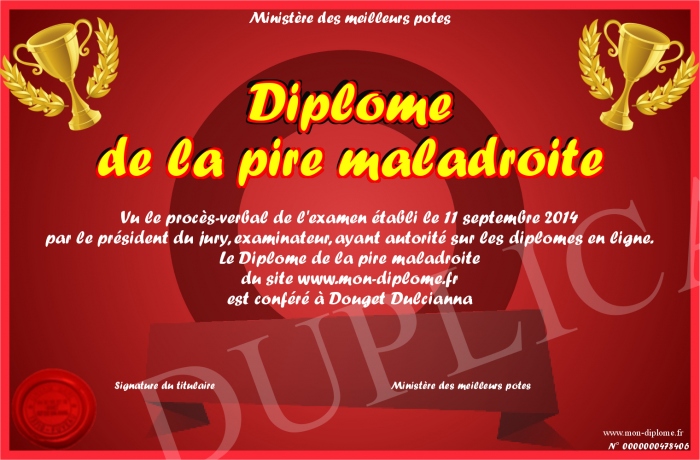 Envoyez par email votre Diplôme de la pire maladroite personalisé