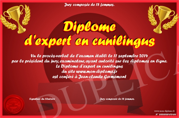 Envoyez par email votre Diplôme d'expert en cunilingus personalisé