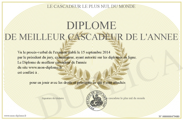 Envoyez par email votre Diplôme de meilleur cascadeur de l'année personalisé