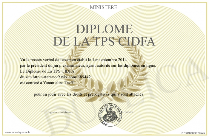 Envoyez par email votre Diplôme de La TPS CIDFA personalisé