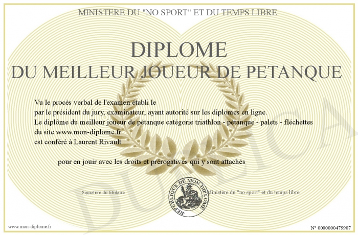 Envoyez par email votre Diplôme du meilleur joueur de pétanque personalisé