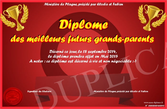 Envoyez par email votre Diplôme des meilleurs futurs grands-parents personalisé