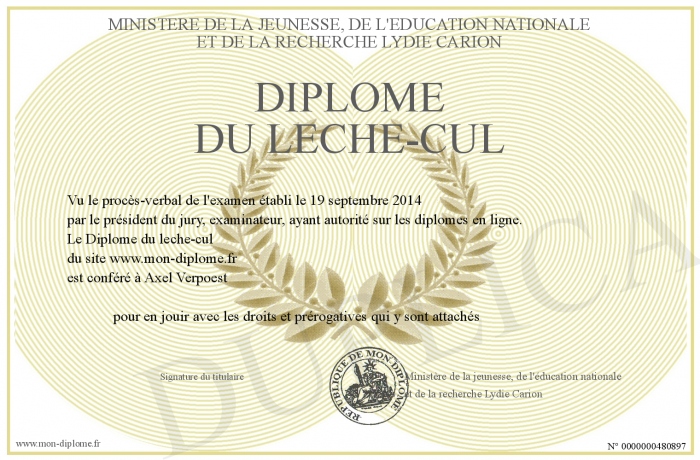 Envoyez par email votre Diplôme du leche-cul personalisé