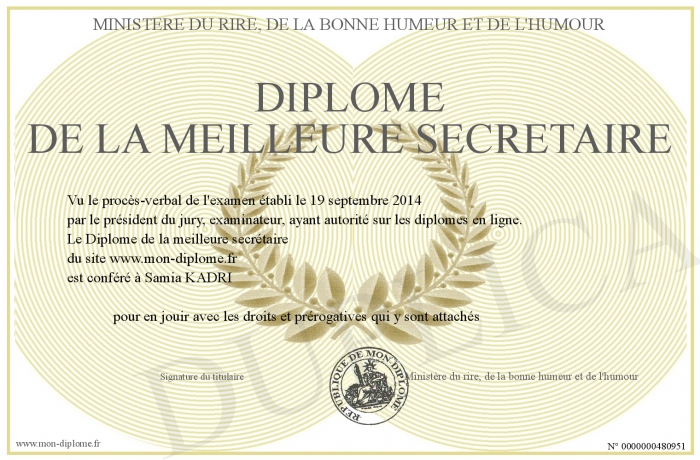 Envoyez par email votre Diplôme de la meilleure secrétaire personalisé