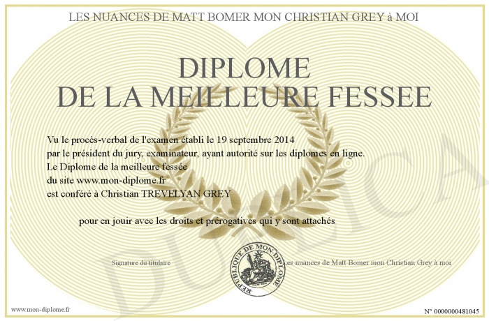 Envoyez par email votre Diplôme de la meilleure fessée personalisé