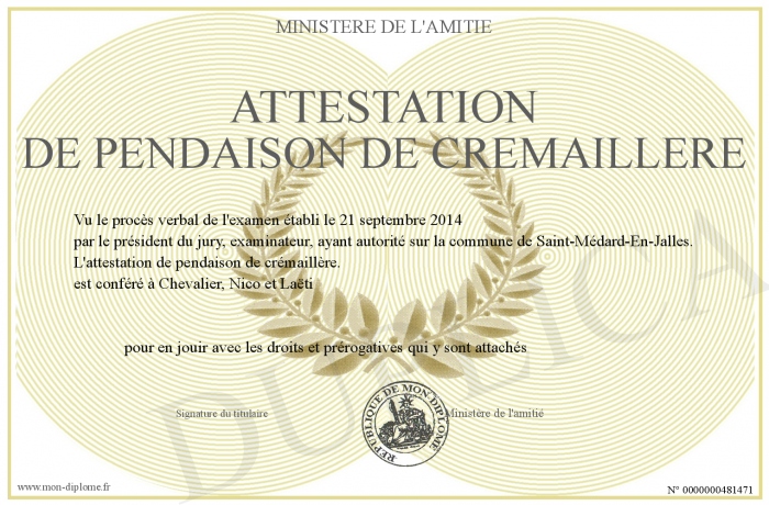Envoyez par email votre ATTESTATION DE PENDAISON DE CREMAILLERE personalisé