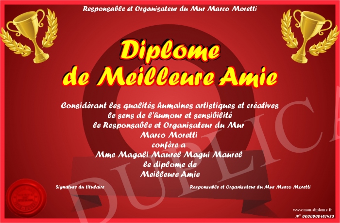 Envoyez par email votre Diplôme de Meilleure Amie personalisé