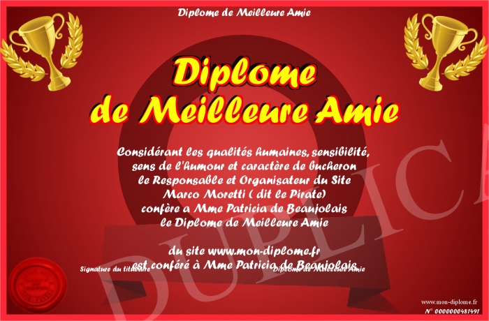 Envoyez par email votre Diplôme de Meilleure Amie personalisé