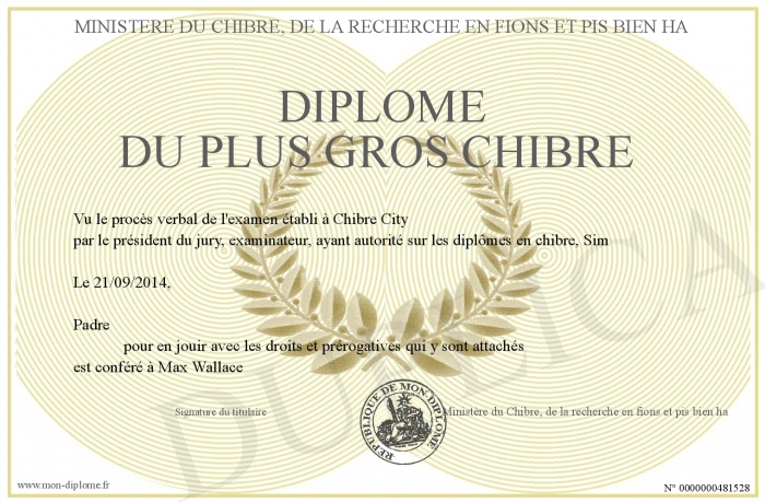 Envoyez par email votre Diplôme du plus Gros Chibre personalisé