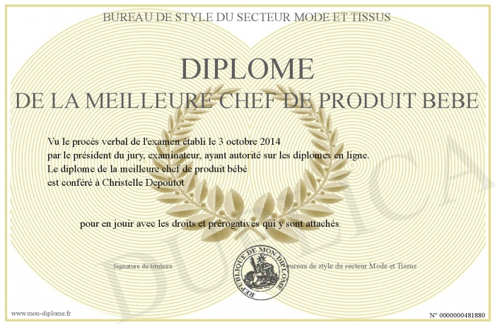 Envoyez par email votre Diplôme de la meilleure chef de produit bébé personalisé