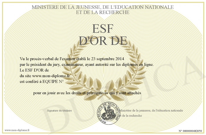 Envoyez par email votre ESF D'OR de personalisé
