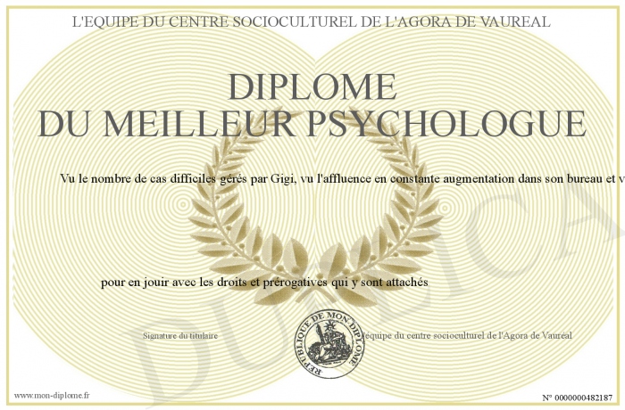 Envoyez par email votre Diplôme du meilleur psychologue personalisé
