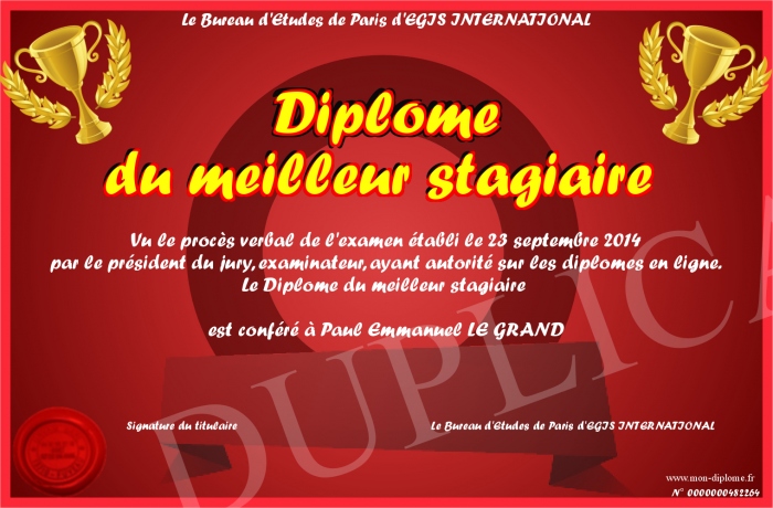 Envoyez par email votre Diplôme du meilleur stagiaire personalisé