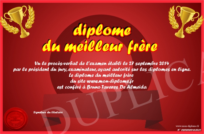 Envoyez par email votre diplôme du meilleur frère personalisé