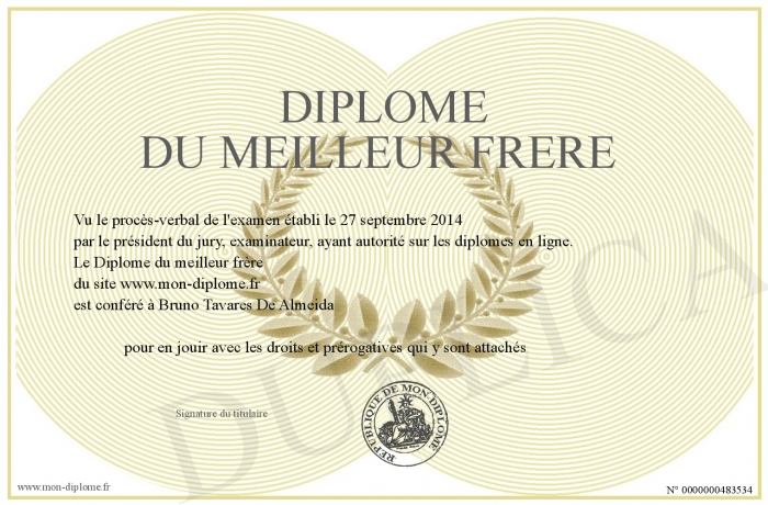 Envoyez par email votre Diplôme du meilleur frère personalisé
