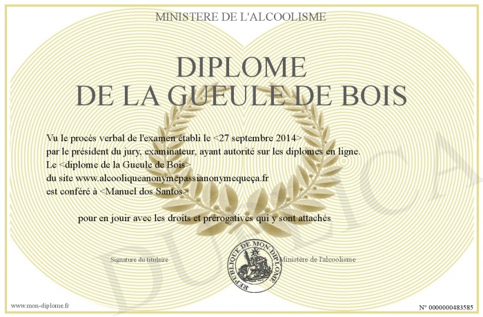 Envoyez par email votre Diplôme de la Gueule de Bois personalisé