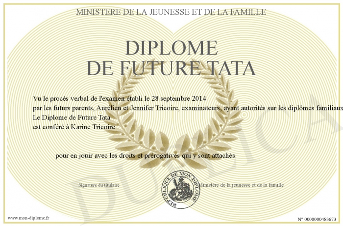 Envoyez par email votre Diplôme de Future Tata personalisé