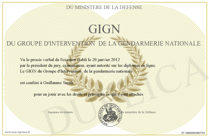 Envoyez par email votre GIGN du Groupe d'Intervention de la gendarmerie nationale personalisé